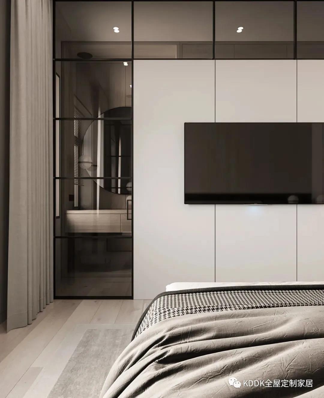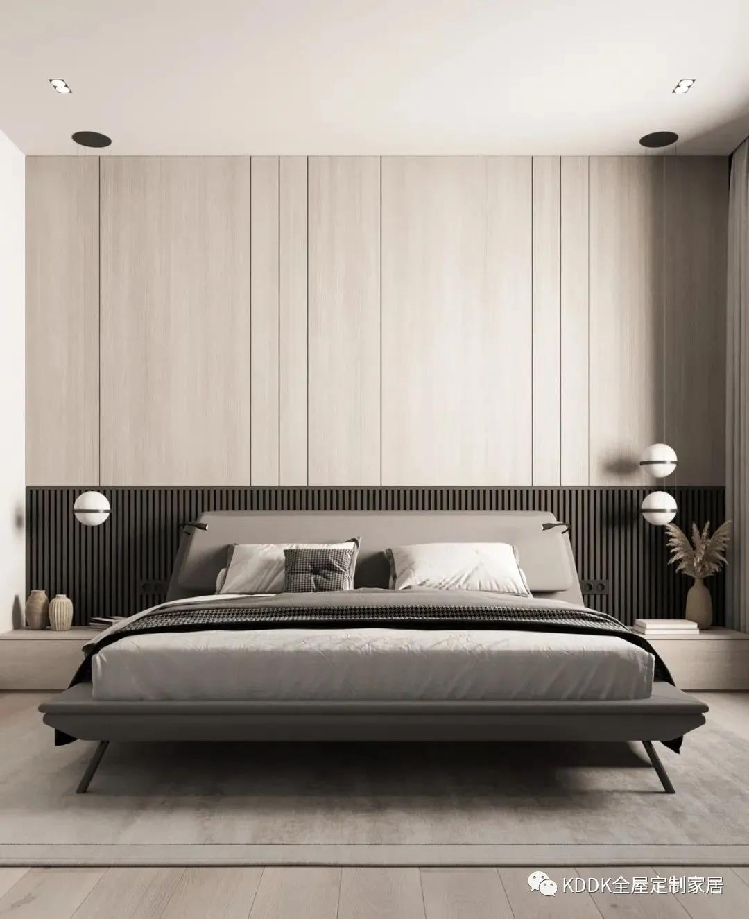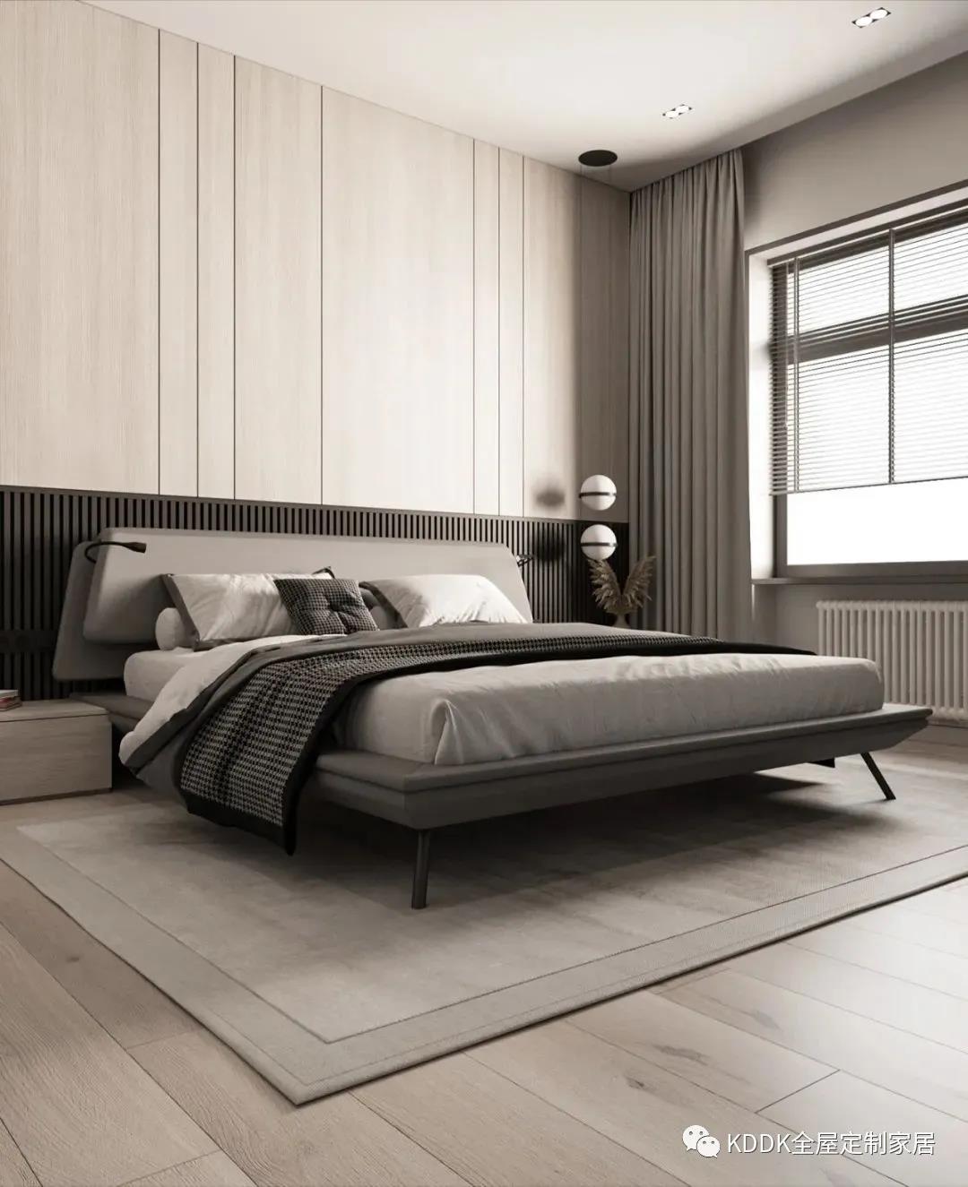 卧室的设计增添了一丝高级感,很大一部分使用的是木质产品,整体风格简约轻奢,令人卸下防备,安然入睡。